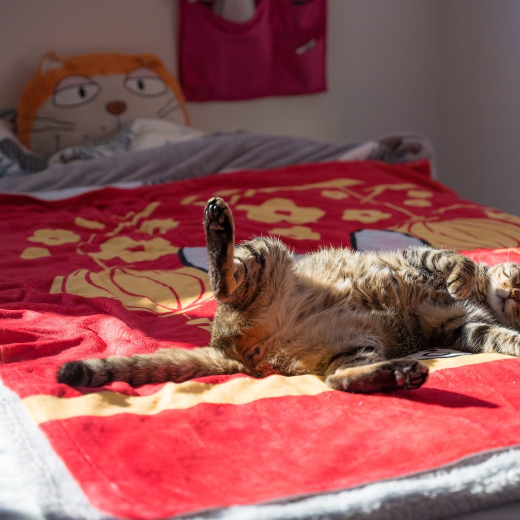 We wonder how this can be comfortable, but cats must be onto something considering how well they sleep all day. When your cat’s on her back and somehow twice her usual length, it may be time to give her a little belly rub or prepare her favorite toys for after her nap. Cats who lie on their backs are feeling safe, so you can rest assured you’re being a great pet parent.